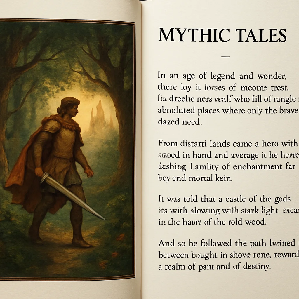 Mythic Tales is a collection of original myth-inspired stories that blend ancient legends, magical realms, and timeless themes of courage, destiny, and love. Each tale is written to capture the wonder of classic mythology while offering fresh, imaginative adventures.